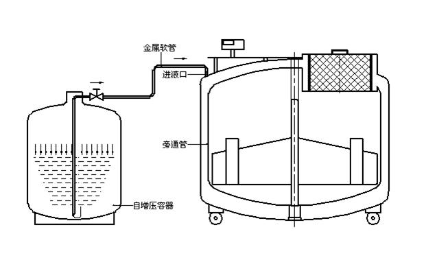 補(bǔ)給罐與液氮儲(chǔ)存罐之間采用法蘭真空軟管柔性連接。